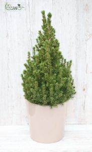 A kisebb, 12 cm-es vagy 2–3 literes cserepekben árult mini fenyők kedves, helytakaré-kos megoldások, akár ajándéknak is. Virágüzletünkben ilyeneket is kínálunk.