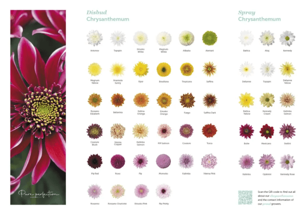A krizantém csodálatos tulajdonsága a változatosság. Becslések szerint több mint 20 000 fajta létezik a virágból, és közel negyven a természetben előforduló faj! Ezek közé tartoznak a klasszikus, egyvirágú és a tollvirágos fajták, valamint néhány szokatlanabb kinézetű virág, mint például a szellőrózsa-krizantém és a vékony pókkrizantém. Nagy rajongói vagyunk az imádnivaló miniatűr santini pompom-krizantémoknak!