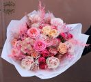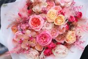 Traumhafter Brautstrauß aus rosafarbenem Bronzeschaum mit englischen Rosen und Orchideen - Blumenlieferung Budapest