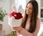 Hase Strauss (mit 12 Rosen) - original product photo with AI background