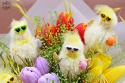 Osterküken mit Sonnenbrillen in einem Tulpenstrauß (12 Stiele) - Blumenlieferung Budapest