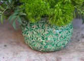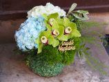 Blumenschale mit blau-grünen Orchideen und Hortensien zum Muttertag - Blumenlieferung Budapest