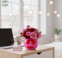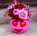 Herz Auge Smiley Vase mit Rote und Rosa Rosen - Blumenlieferung Budapest