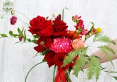 Luftiger roter Rosenbrautstrauß mit roten Rosen