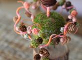 pinke Kerzendekoration auf Holzscheibe (46 cm)