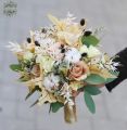 Autumn winter bridal bouquet, with Nude rose, dried flowers and cotton (nude, white)