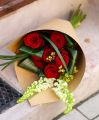 Red roses with ornithogalum in kraft paper cone (7 +2 stems)