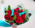 Round bouquet with red roses and spray roses (9 stems) - Flower Delivery Budapest