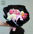 Ballagási csokor unikornissal, habos rózsaszín virágokkal - Virágküldés Budapesten