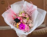Halvány rózsaszín virágos ballagási csokor lányoknak  - original product photo with AI background