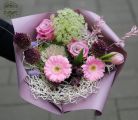 Kis lilás csokor gerberával, rózsával, tulipánnal