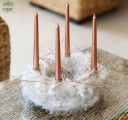 Különleges légies adventi koszorú ezüst angyalhajból, bronz ágakkal, kagyló lapokkal (35cm)