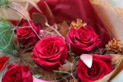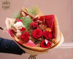 Mikulás macis téli csokor vörös rózsával - Virágküldés Budapesten
