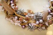 Modern adventi koszorú vizililiom szár alapon, pasztell színekkel (35cm)