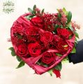 Szív csokor valentin-napra 9 vörös rózsával, vörös selymes csokortartóval - Virágküldés Budapesten