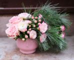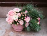Téli virágfrizura arc kaspóban, rózsákkal - Virágküldés Budapesten